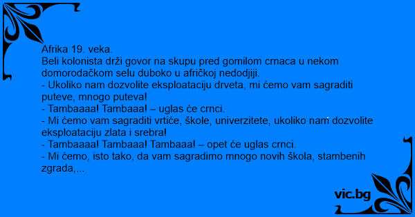 - Tambaaaa! Tambaaa! – uglas će crnci.
