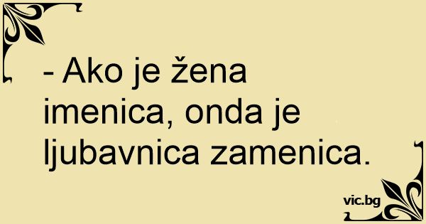 - Ako je žena imenica, onda je ljubavnica zamenica.