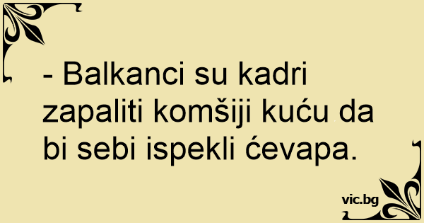 - Balkanci su kadri zapaliti komšiji kuću da bi sebi ispekli ćevapa.