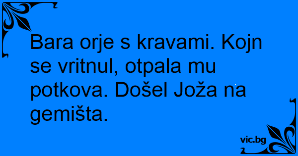 Bara orje s kravami. Kojn se vritnul, otpala mu potkova. Došel Joža na gemišta.