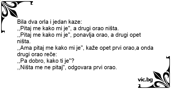 ,,Ama pitaj me kako mi je", kaže opet prvi orao,a onda drugi orao reče: