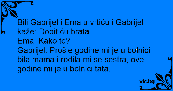 Bili Gabrijel i Ema u vrtiću i Gabrijel kaže: Dobit ću brata.