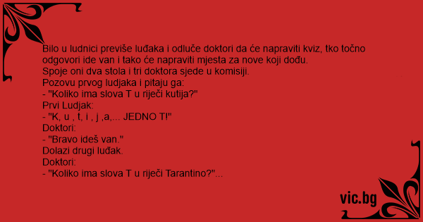 Bilo u ludnici previše luđaka i odluče doktori da će napraviti kviz, tko točno odgovori ide van i tako će napraviti mjesta za nove koji dođu.