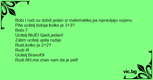 Bobi i rudi su dobili jedan iz matematike,pa ispravljaju ocjenu.