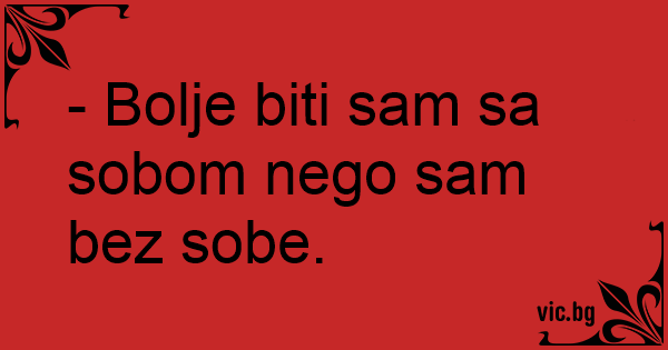 - Bolje biti sam sa sobom nego sam bez sobe.
