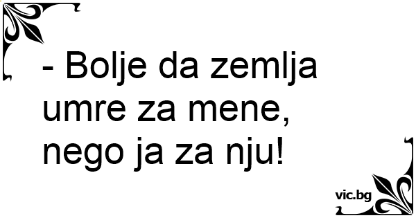 - Bolje da zemlja umre za mene, nego ja za nju!