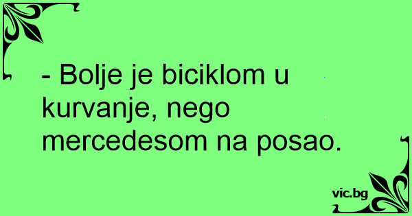- Bolje je biciklom u kurvanje, nego mercedesom na posao.