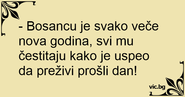- Bosancu je svako veče nova godina, svi mu čestitaju kako je uspeo da preživi prošli dan!