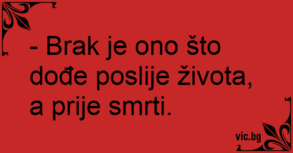 - Brak je ono što dođe poslije života, a prije smrti.