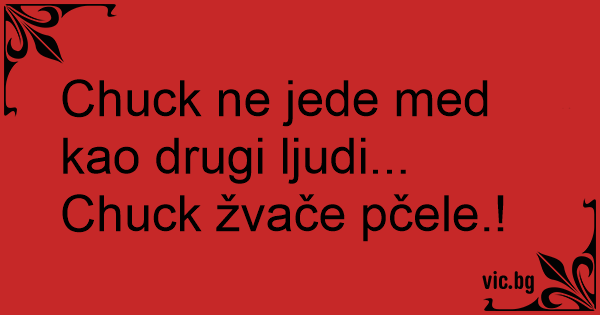 Chuck ne jede med kao drugi ljudi... Chuck žvače pčele.!