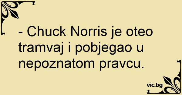 - Chuck Norris je oteo tramvaj i pobjegao u nepoznatom pravcu.
