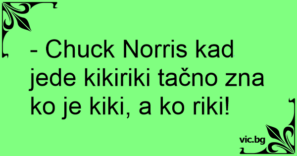 - Chuck Norris kad jede kikiriki tačno zna ko je kiki, a ko riki!