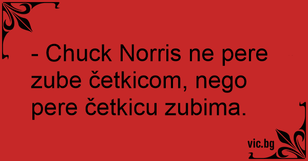 - Chuck Norris ne pere zube četkicom, nego pere četkicu zubima.