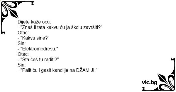 - "Znaš li tata kakvu ću ja školu završiti?"