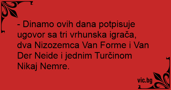 - Dinamo ovih dana potpisuje ugovor sa tri vrhunska igrača, dva Nizozemca Van Forme i Van Der Neide i jednim Turčinom Nikaj Nemre.