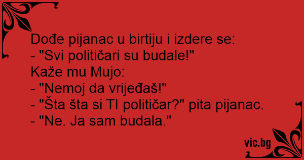 - "Šta šta si TI političar?" pita pijanac.