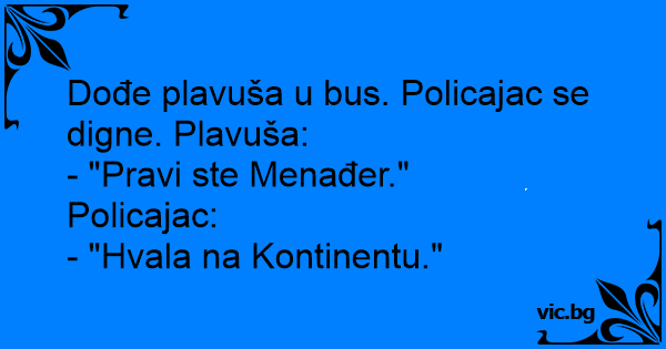 Dođe plavuša u bus. Policajac se digne. Plavuša: