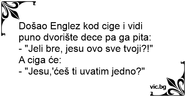 Došao Englez kod cige i vidi puno dvorište dece pa ga pita: