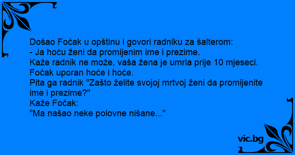 Pita ga radnik "Zašto želite svojoj mrtvoj ženi da promijenite ime i prezime?"