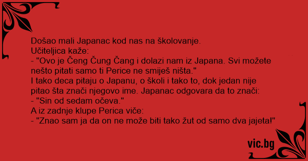 - "Ovo je Čeng Čung Čang i dolazi nam iz Japana. Svi možete nešto pitati samo ti Perice ne smiješ ništa."