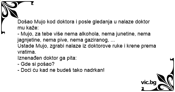 Došao Mujo kod doktora i posle gledanja u nalaze doktor mu kaže: