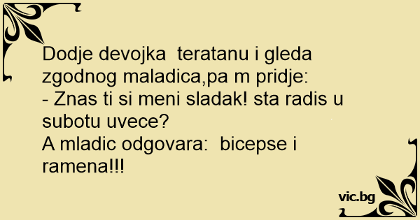 Dodje devojka teratanu i gleda zgodnog maladica,pa m pridje: