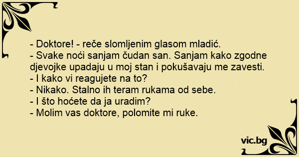 - Molim vas doktore, polomite mi ruke.