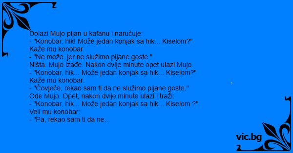 - "Konobar, hik... Može jedan konjak sa hik... Kiselom ?"