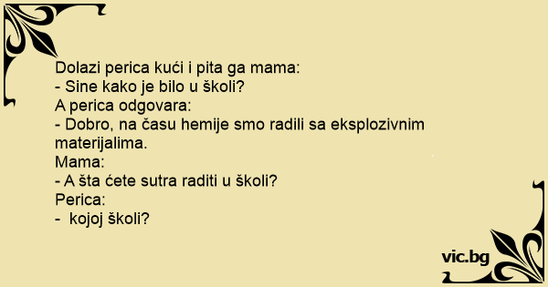 Dolazi perica kući i pita ga mama: