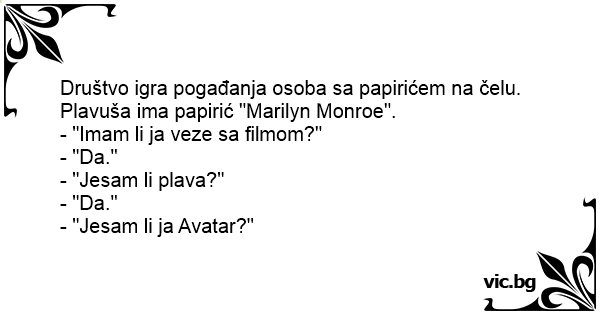 Društvo igra pogađanja osoba sa papirićem na čelu.