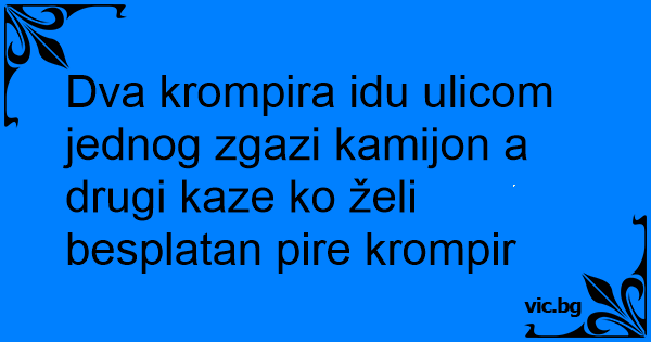 Dva krompira idu ulicom jednog zgazi kamijon a drugi kaze ko želi besplatan pire krompir