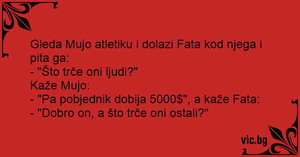 Gleda Mujo atletiku i dolazi Fata kod njega i pita ga: