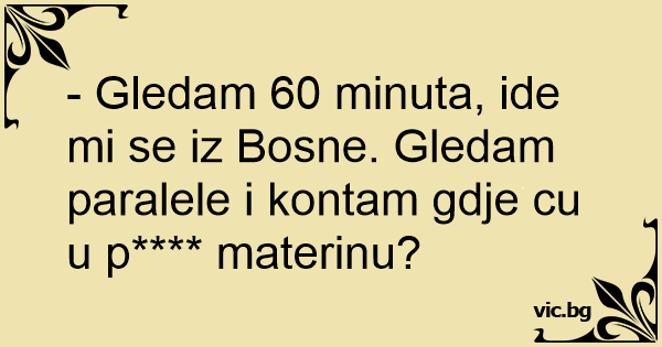 - Gledam 60 minuta, ide mi se iz Bosne. Gledam paralele i kontam gdje cu u p**** materinu?