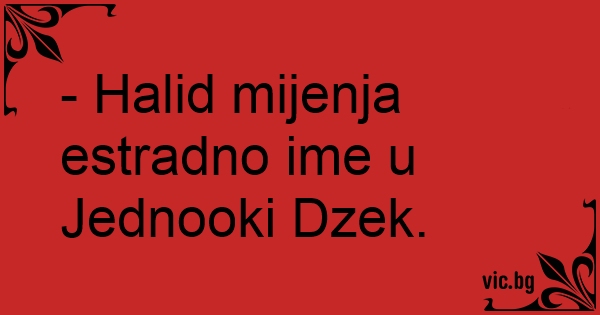 - Halid mijenja estradno ime u Jednooki Dzek.