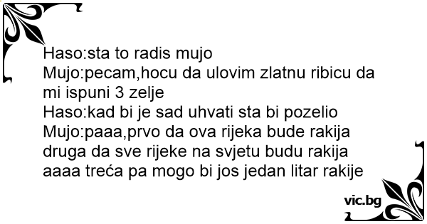 Mujo:pecam,hocu da ulovim zlatnu ribicu da mi ispuni 3 zelje