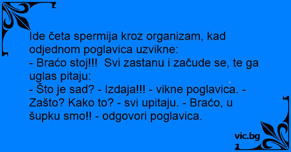 Ide četa spermija kroz organizam, kad odjednom poglavica uzvikne: