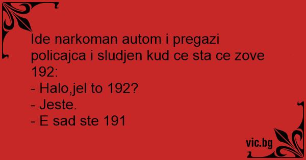 Ide narkoman autom i pregazi policajca i sludjen kud ce sta ce zove 192: