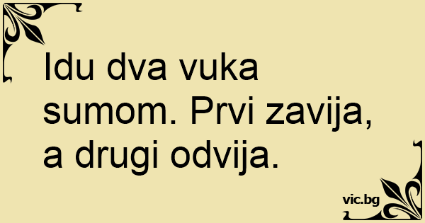 Idu dva vuka sumom. Prvi zavija, a drugi odvija.