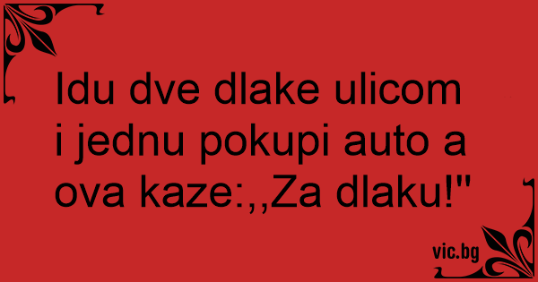 Idu dve dlake ulicom i jednu pokupi auto a ova kaze:,,Za dlaku!''