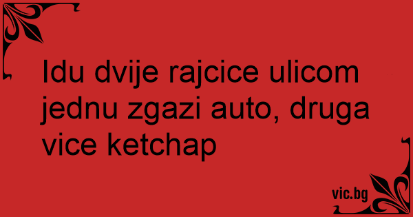 Idu dvije rajcice ulicom jednu zgazi auto, druga vice ketchap