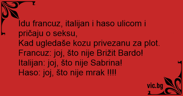 Idu francuz, italijan i haso ulicom i pričaju o seksu,