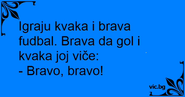 Igraju kvaka i brava fudbal. Brava da gol i kvaka joj viče: