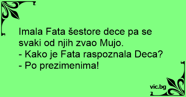 Imala Fata šestore dece pa se svaki od njih zvao Mujo.