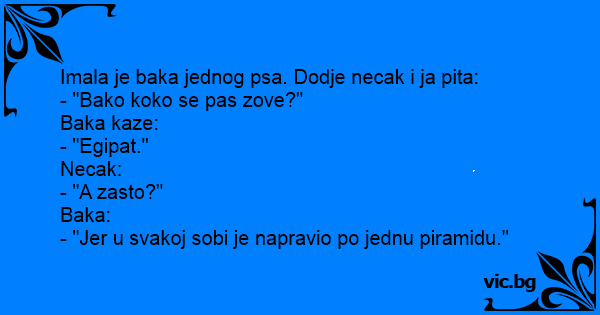 Imala je baka jednog psa. Dodje necak i ja pita: