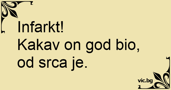 Infarkt! Kakav on god bio,...