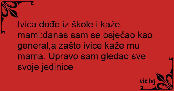 Ivica dođe iz škole i kaže mami:danas sam se osjećao kao general,a zašto ivice kaže mu mama. Upravo sam gledao sve svoje jedinice