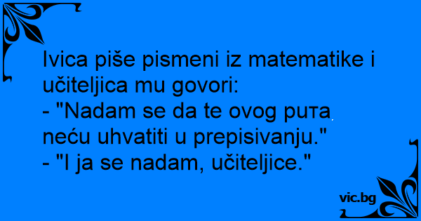 Ivica piše pismeni iz matematike i učiteljica mu govori:
