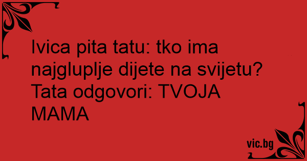 Ivica pita tatu: tko ima najgluplje dijete na svijetu? Tata odgovori: TVOJA MAMA