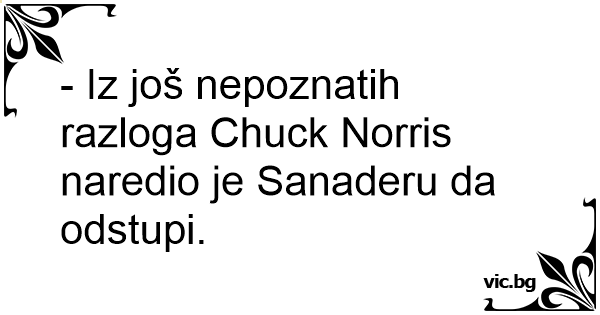 - Iz još nepoznatih razloga Chuck Norris naredio je Sanaderu da odstupi.