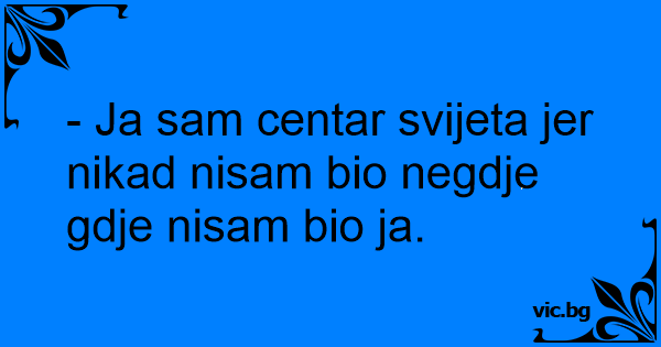 - Ja sam centar svijeta jer nikad nisam bio negdje gdje nisam bio ja.